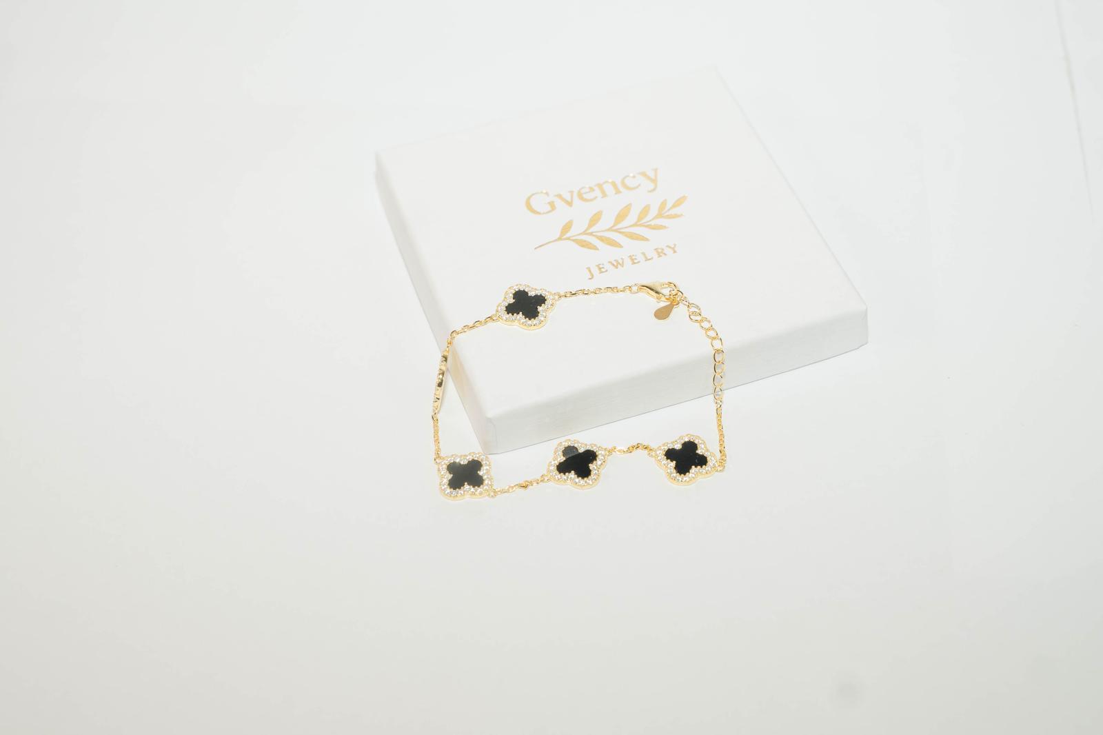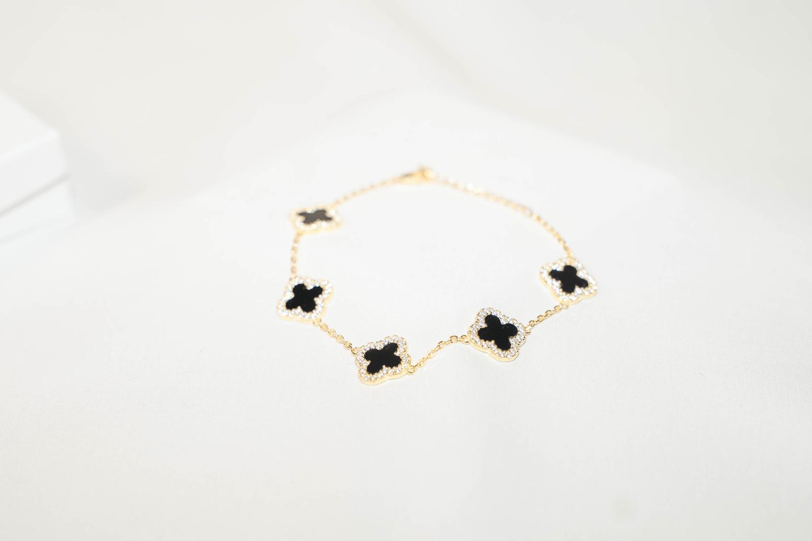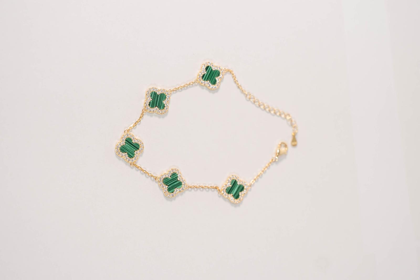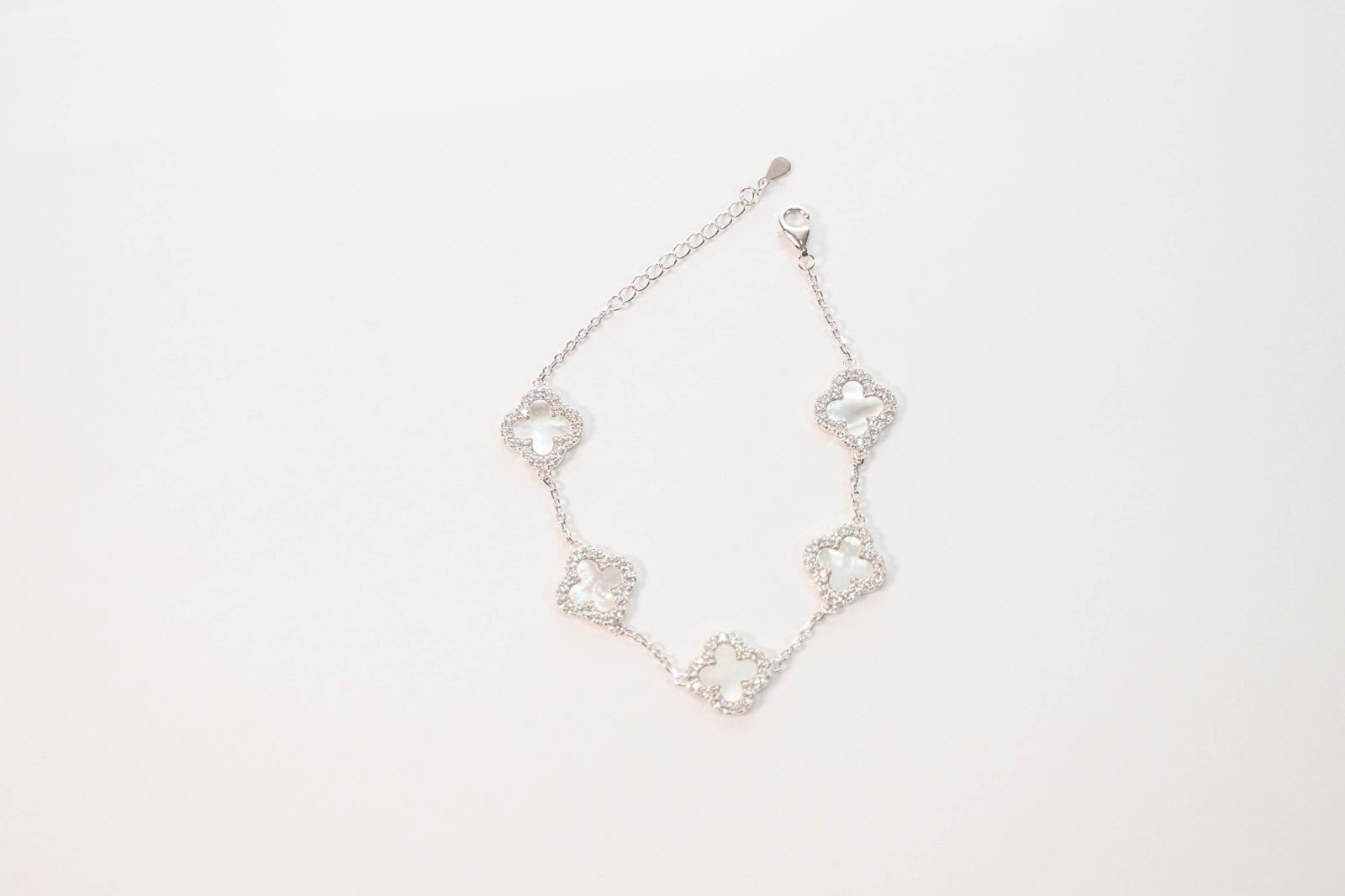 Ce bracelet doré à maillons trèfles nacrés apporte une touche raffinée à chaque tenue.